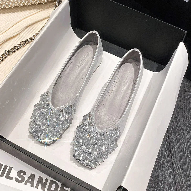 2025 New Pointy Single Shoes Women Flat Glitter Shallow Mouth Temperament All Soft Sole Ladle Shoes Large Size Women'S Shoes