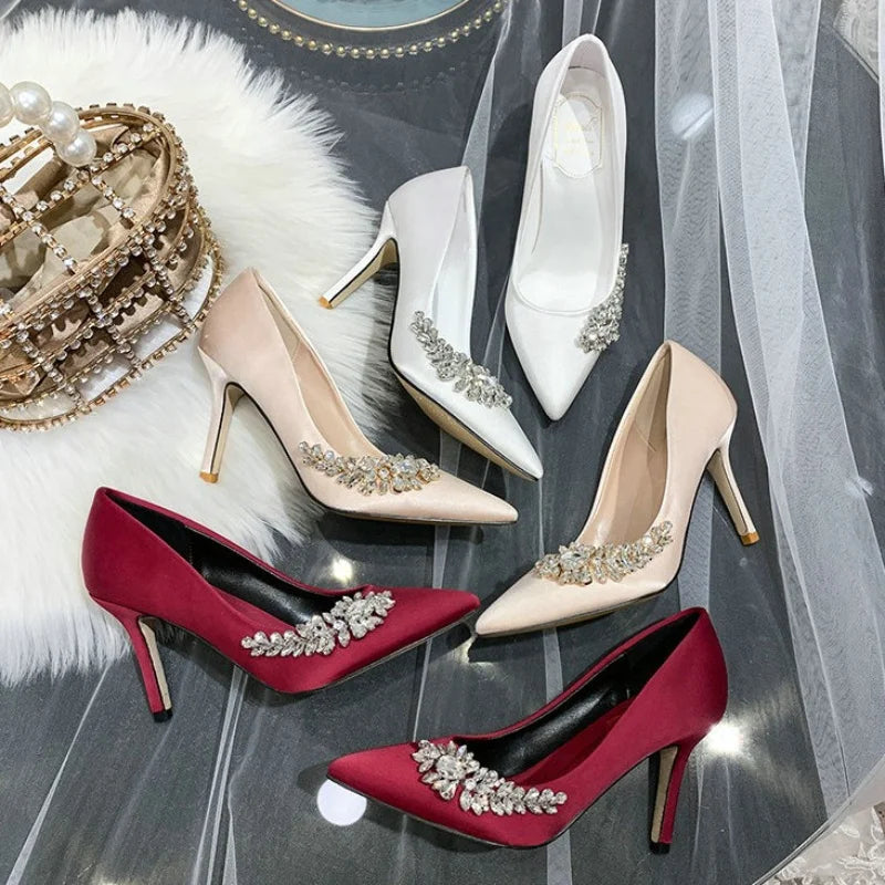 2025 European Wedding Shoes Women's White Diamond-rhine-crystal stiletto Heels Pointy Red Bridal Shoes Fashion women's Bridesmai