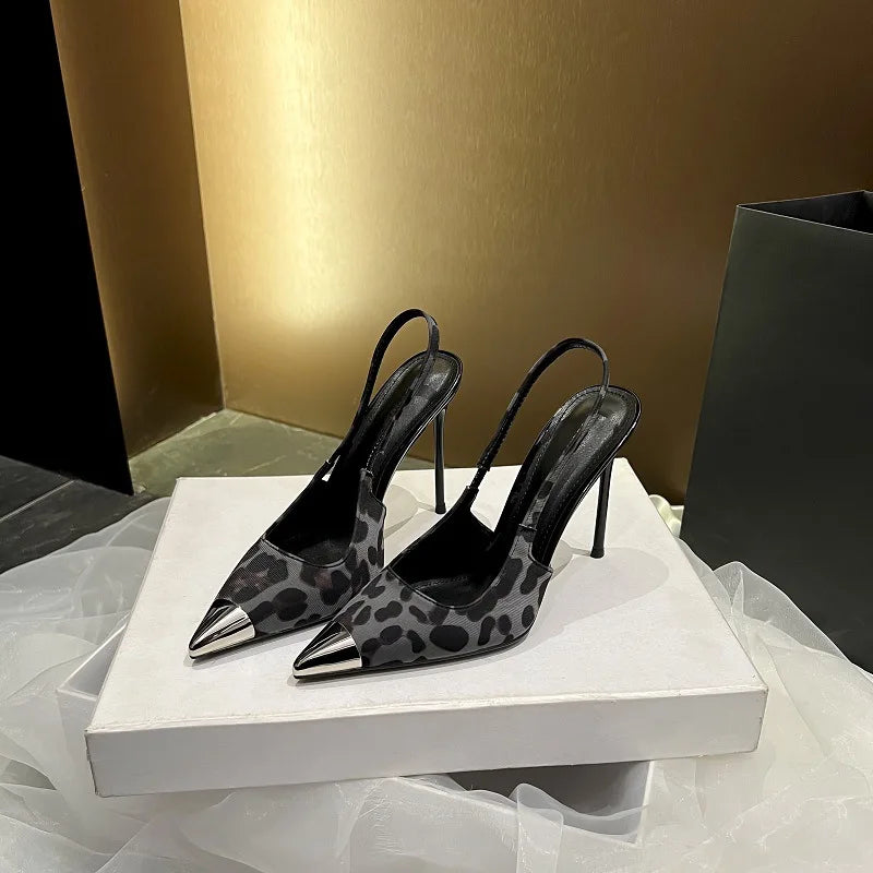 2025 New Metal Gray Leopard-Print Stiletto Heels For Women Female Niche Design Sexy Pointy Shallow Mouth Single Shoes