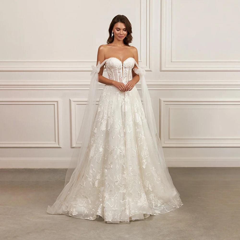 Elegant Sweetheart Lace Applique Beach A Line Wedding Dresses Sweep Train Corset Evening Gowns Custom Made Vestido De Noiv