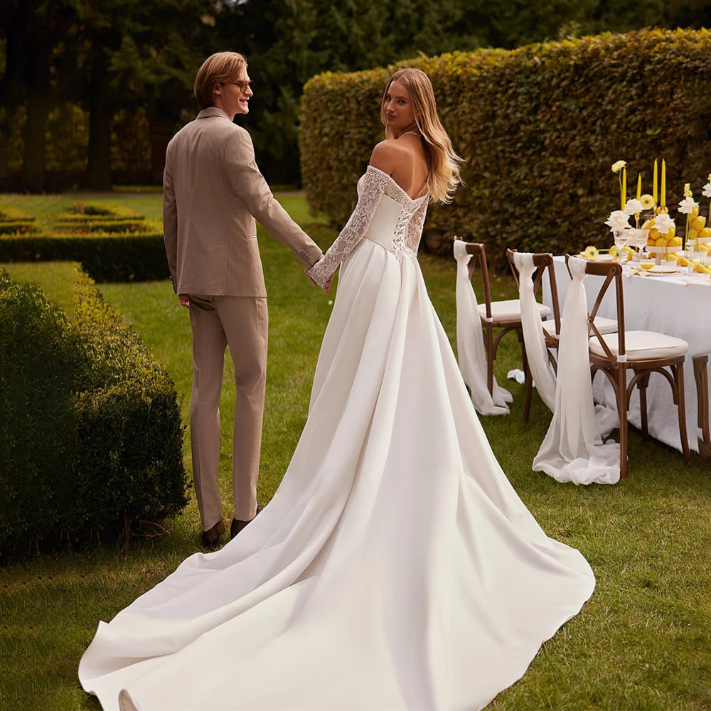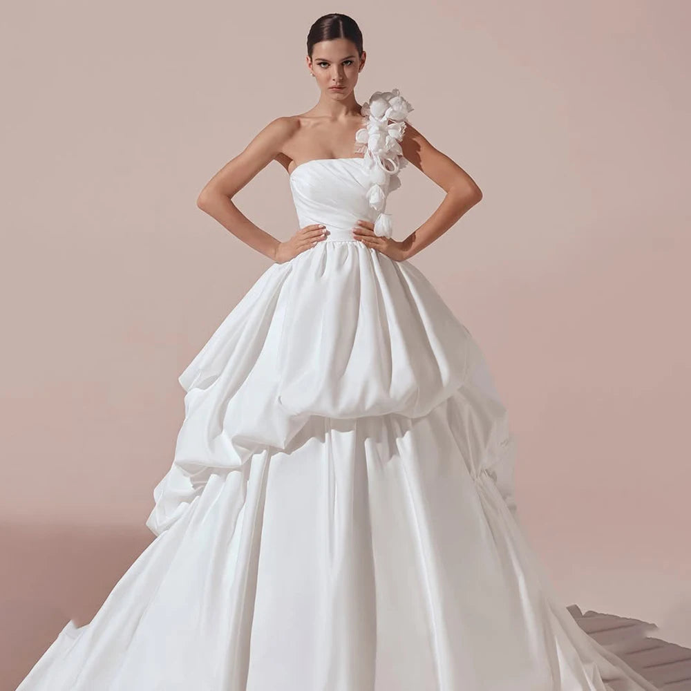 Customized Off Shoulder Satin Princess Wedding Dresses For Women 2026 Strapless Bridal Gowns robe de mariée