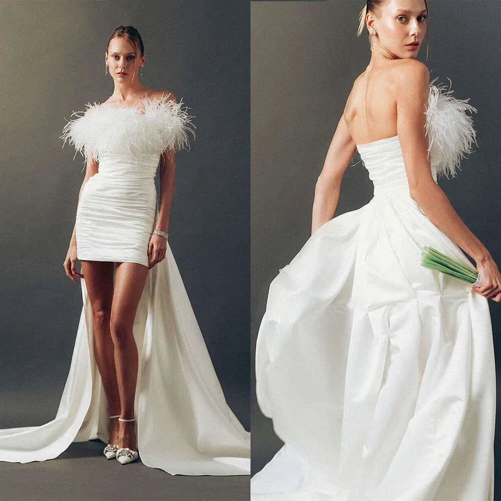 Customized Sexy Tight Pleated Feather Princess Wedding Dress With Sleeveless Backless And Detachable Skirt Bridal Party Dress