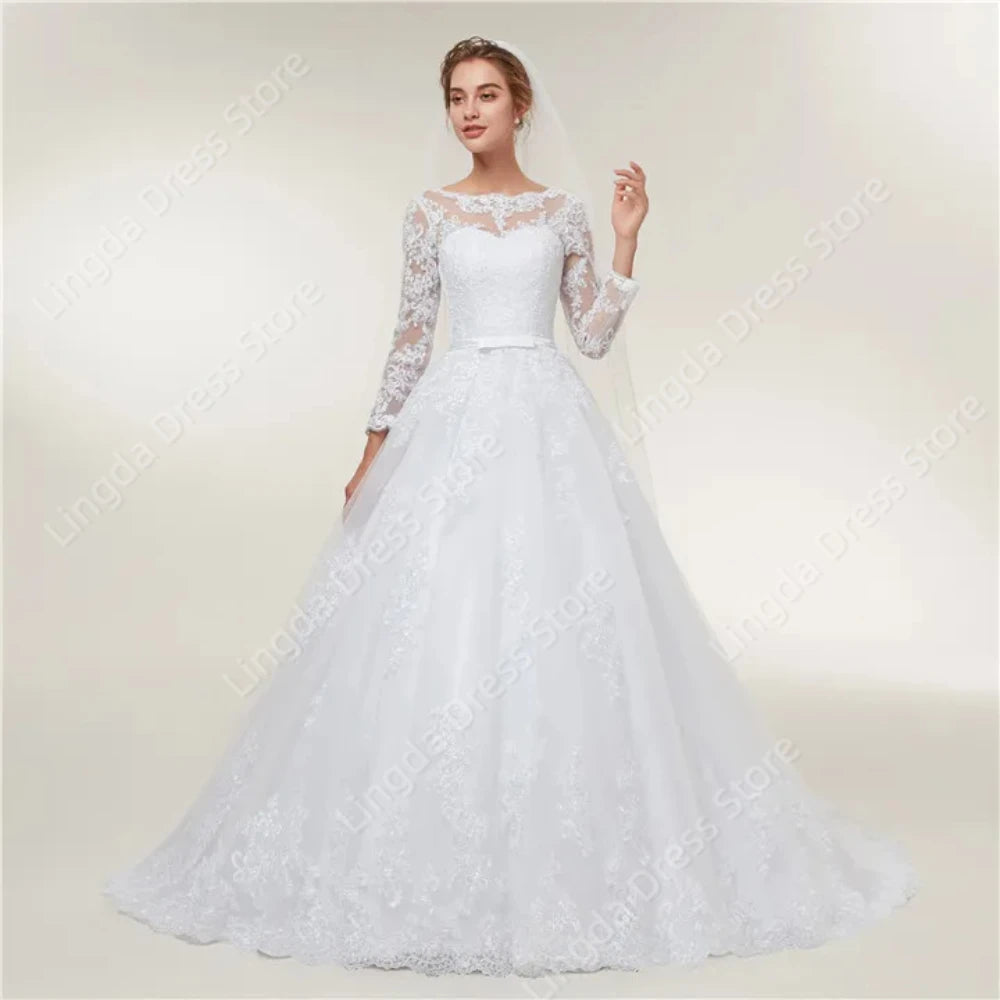 Bohemian Beauty Princess Luxury tulle round neck lace applique bridal A-line custom wedding dress Vestidos de novia