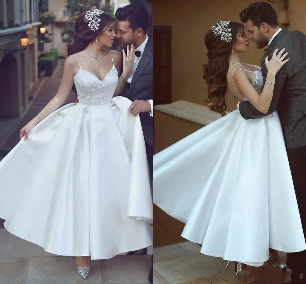 Fashion new Line A Princess sexy ankle-length beach wedding dress Italian shoulder halter Holiday Beach Bride short dress 2025