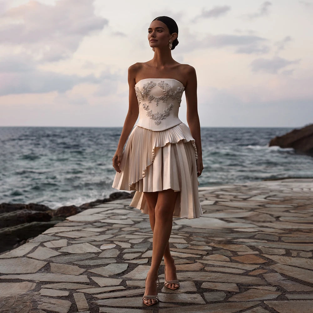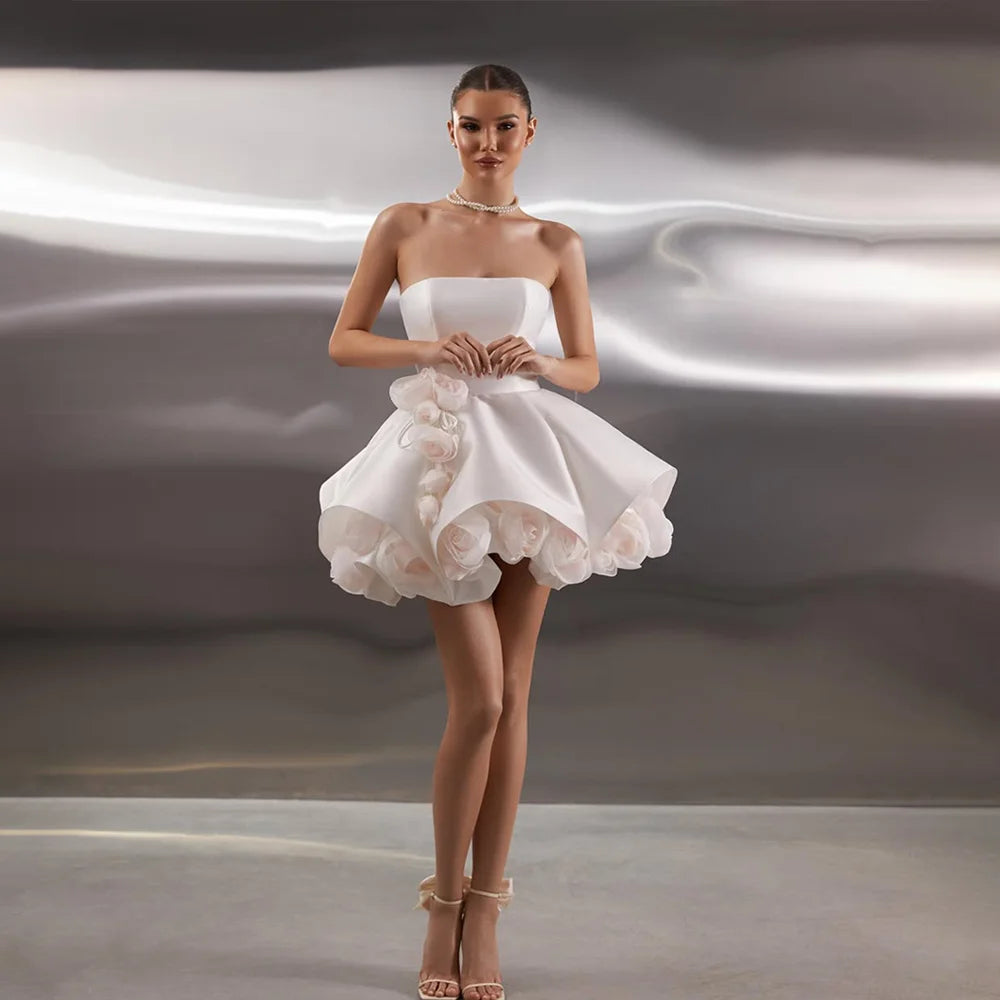 Modern Strapless Wedding Dress Short Backless Mini Bridal Gown Custom Made Prom Dresses Vestido De Noival robe de mariée