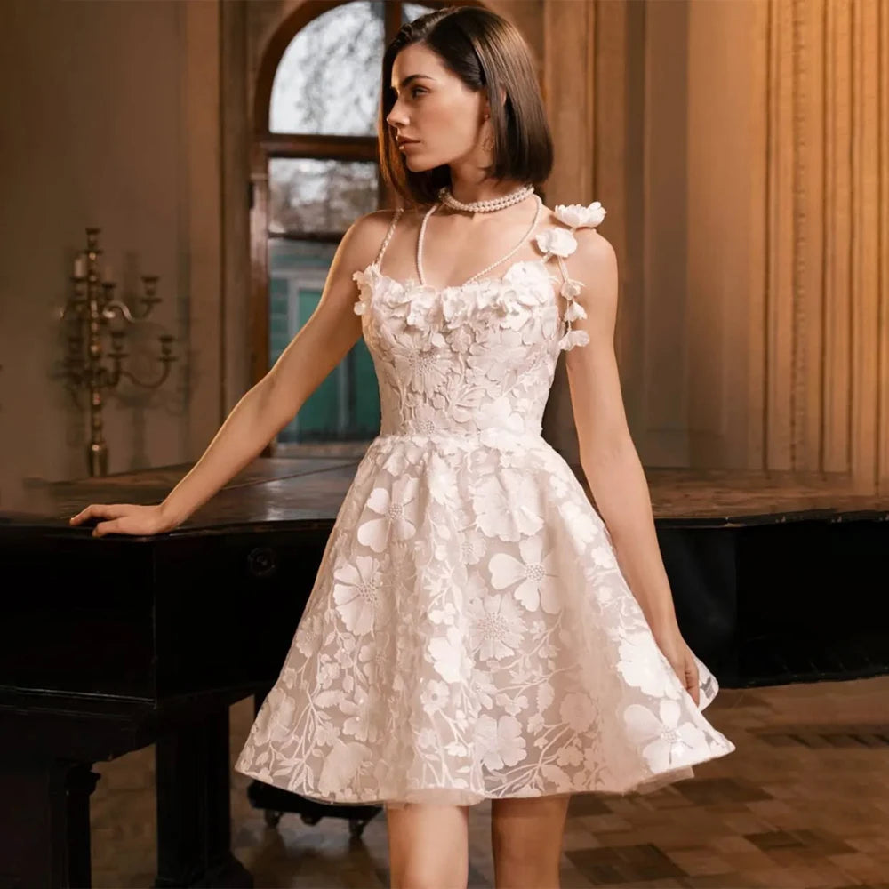 Short Wedding Dresses Spaghetti Strap A-line Party Gown Custom Size Prom Dress 2025 Bride
