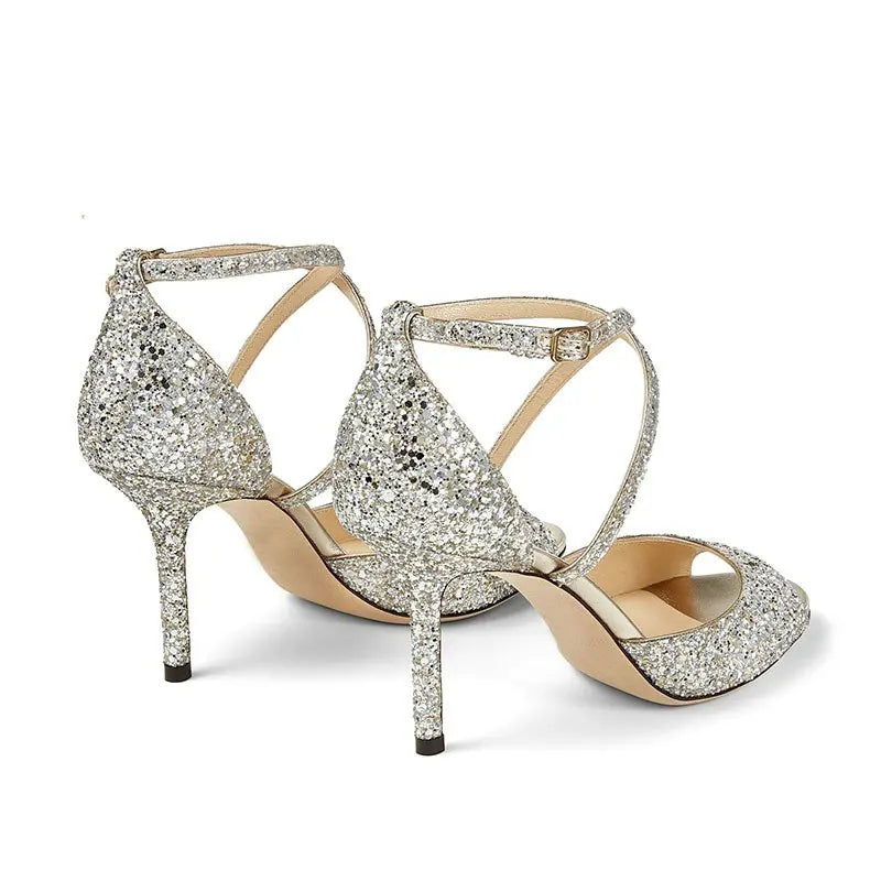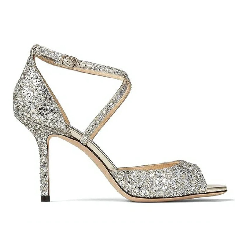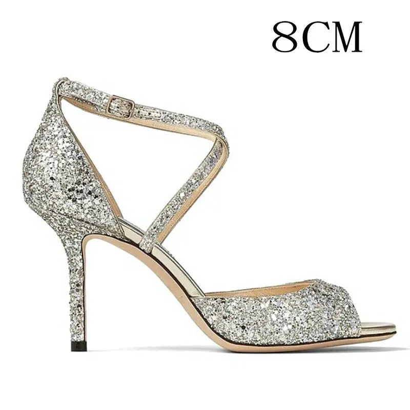 2025 Summer New Women'S Wedding Shoes Sequined Cross-Strap Stiletto Sandals Single Shoe Women'S Silver Bridesmaid Shoes
