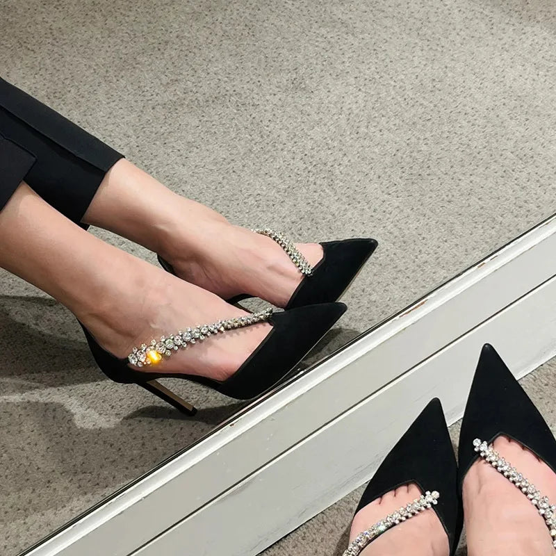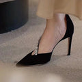 2025 White Pearl Pointed High Heel Sandals Fine Heel Sandals Female Bride Wedding Shoes Party Banquet