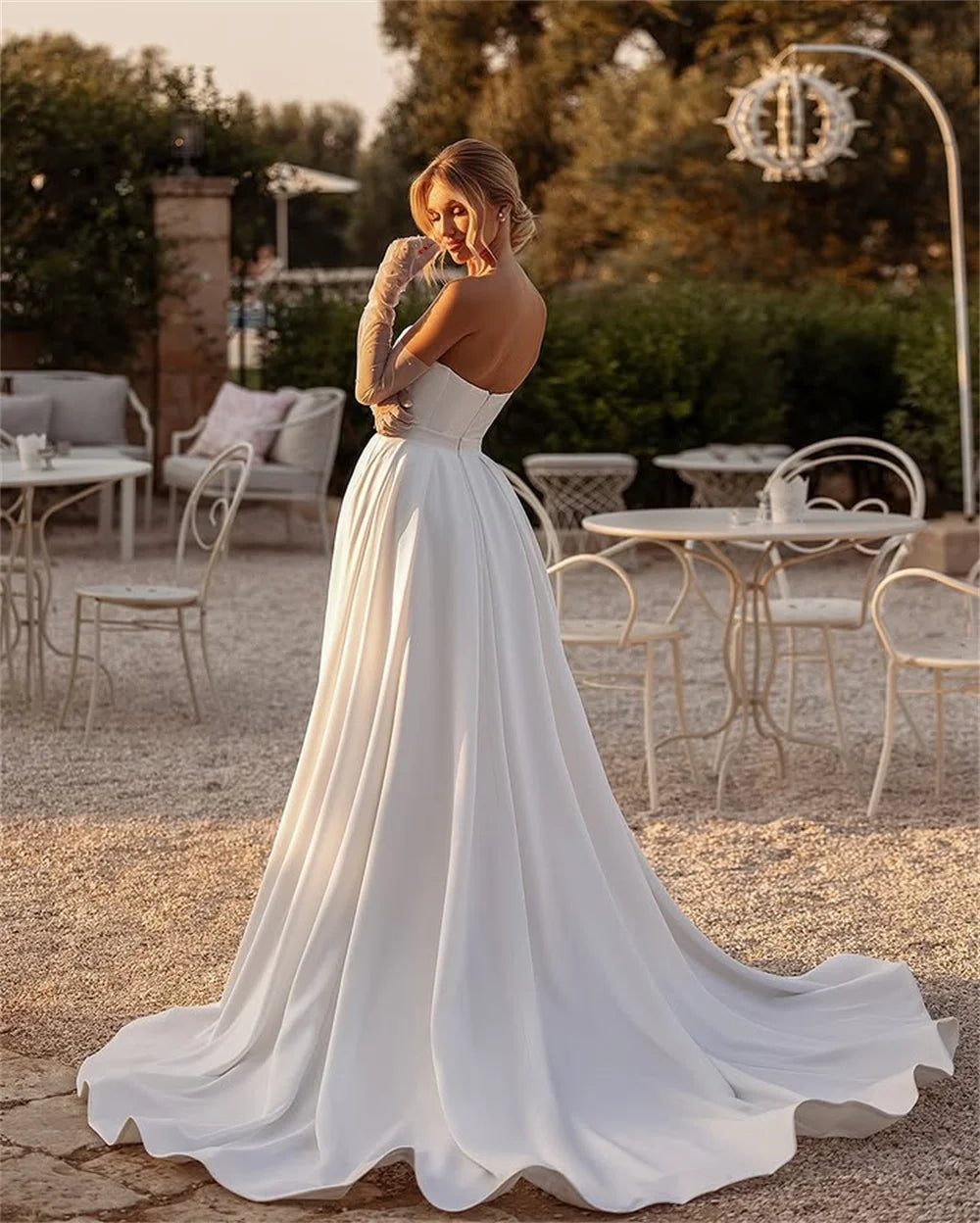 2025Strapless With Peals Wedding Gown Sleeveless A-line Rarty dresses Backless Romovable Skirt Prom Gowns vestidos de novia