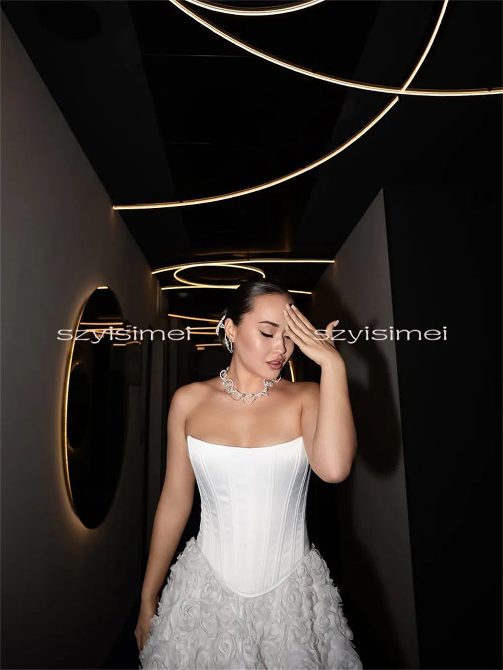 Every gown undergoes a meticulous creation process. Due to variations in lighting, display settings, and photography conditions, slight color differences may occur between product images and the actual dress. For the most accurate color reference, we recommend viewing on Apple devices.