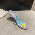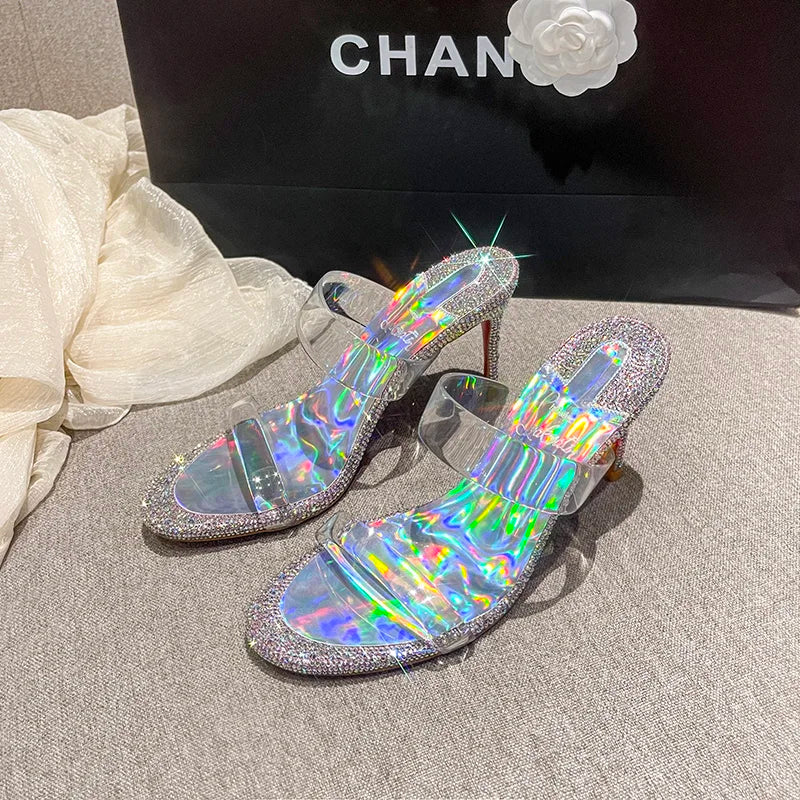 A Word With Transparent Sandals 2025 New High-Heeled Slippers Female Fashion Simple Style Diamond Slippers Female Summer Wear