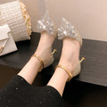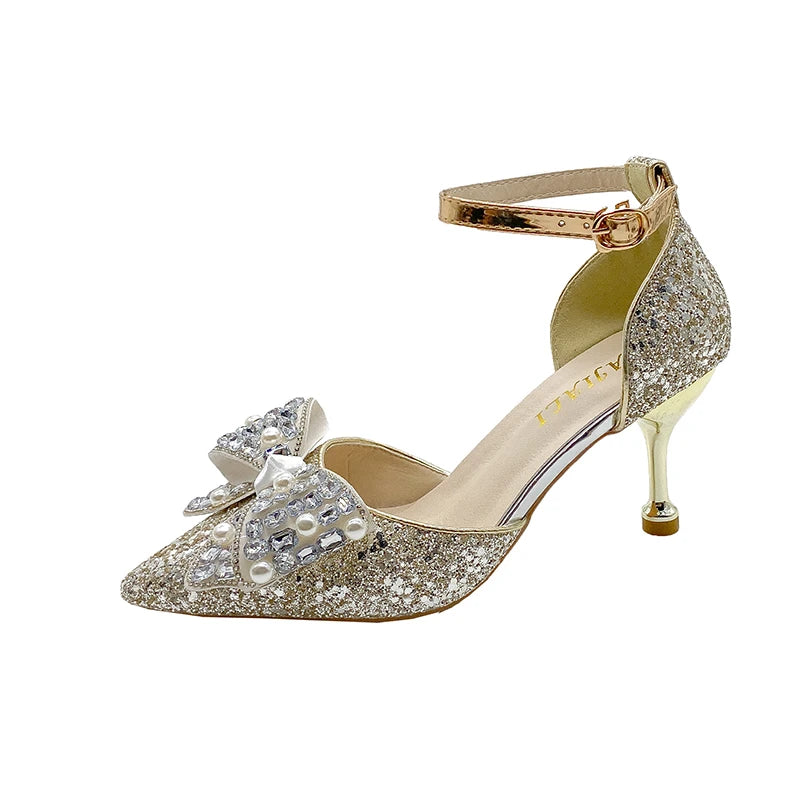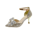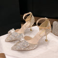 Banquet Stiletto Sandals Women's Fashion Pointed Toe Shallow Slip Rhinestone Flower Strap Anti-Slip Wear-Resistant High Heels