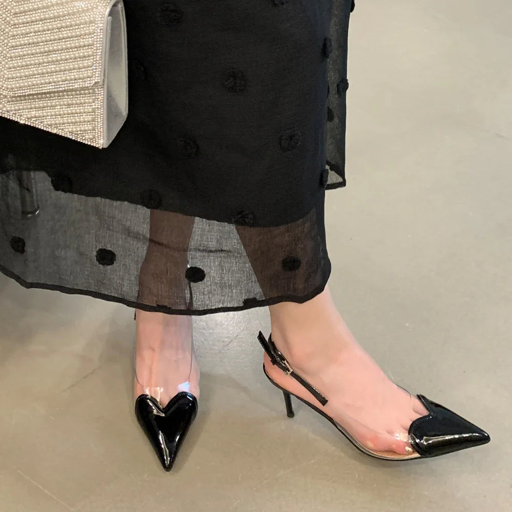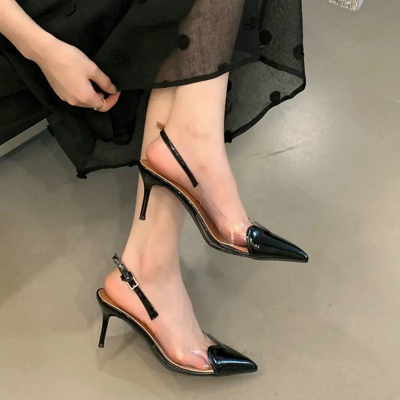 Baotou Sandals 2025 New High-Heeled Women'S Skinny Heel Pointed Metal Buckle After Empty French Temperament Shoes