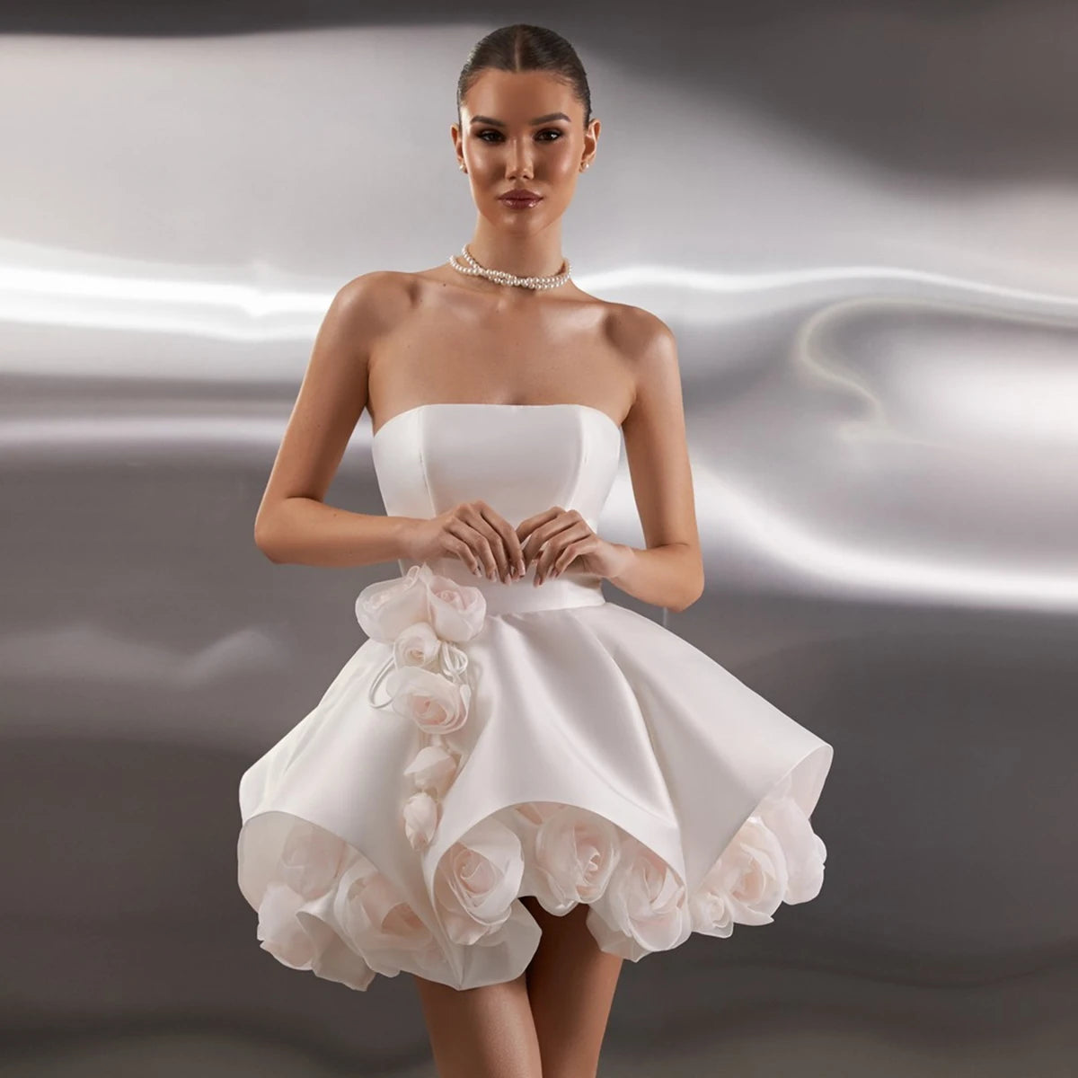 Beach Flower Short Wedding Dresses For Bride Puffy Ball Gown For Women Backless Bridal Party Gown Customized Vestidos novia