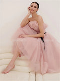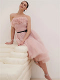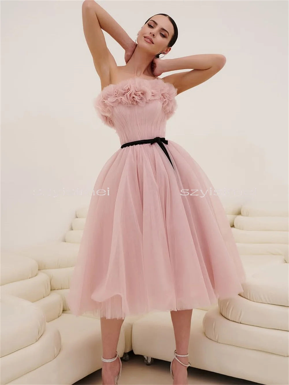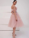 Beautiful Pink Tull Wedding Dresses Sleeveless Short Prom Grown Custom Made Knee Length Party Dress Vestido De Noival