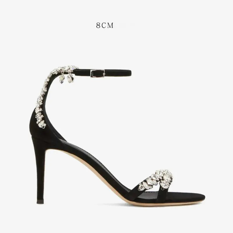 Black High Heels Women Thin With The Style Of Socialite 2025 All Matching One-Line Rhinobarous Open-Toe Round Toe Sandals
