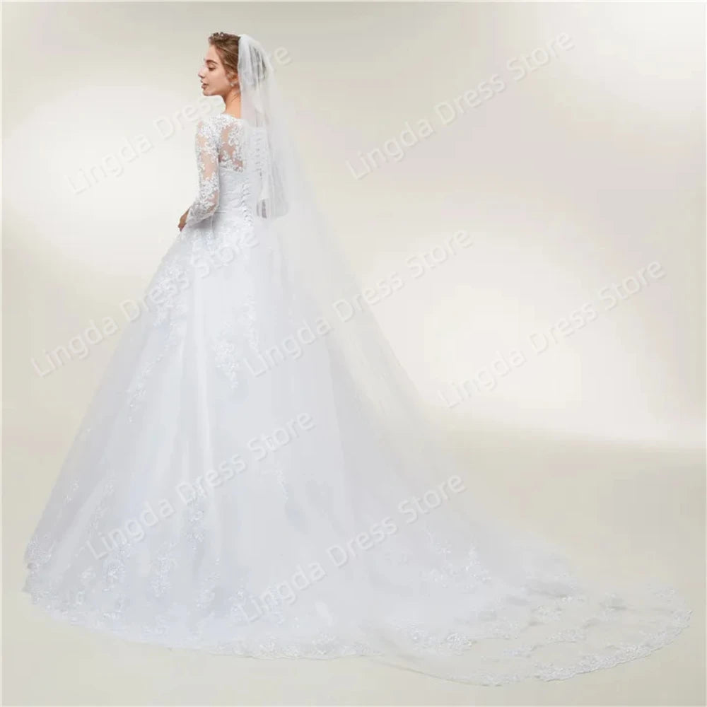 Bohemian Beauty Princess Luxury tulle round neck lace applique bridal A-line custom wedding dress Vestidos de novia