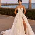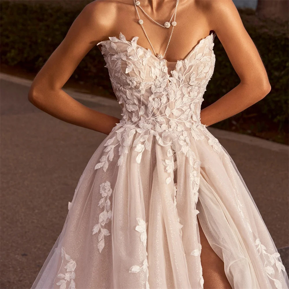 Charming Lace Appliques Sweetheart Wedding Dresses A Line Sleeves Bridal Gown With Split Custom Made 2026 Evening Gowns