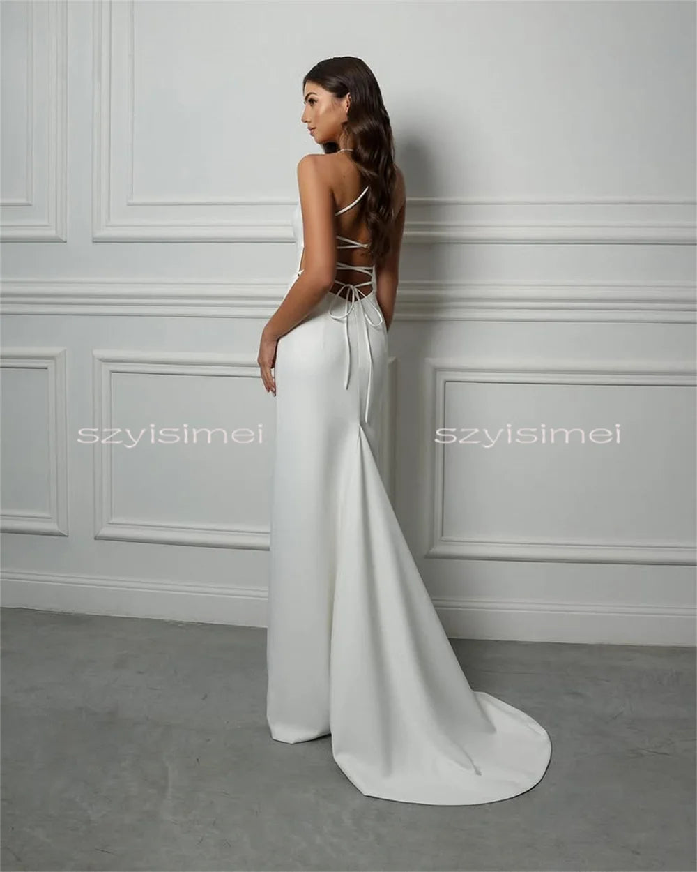 Classic Halter Neck Wedding Dresses for Women Sleeveless Mermaid Bridal Gown Back Sexy Tied Evening Dress Vestido De Casamento