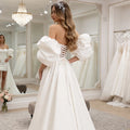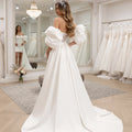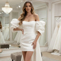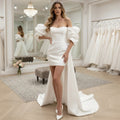 Classic Mermaid Puffy Sleeve Short Wedding Dresses For Bride Strapless Sheath Satin Bridal Party Gown With Train Vestidos Novia