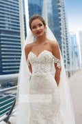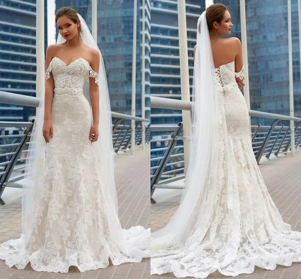 Classic Modest Lace Mermaid Wedding Dress 2025 Sexy Lower Shoulder Decal Beach Sweetheart Pearl Corset Custom bridal dress