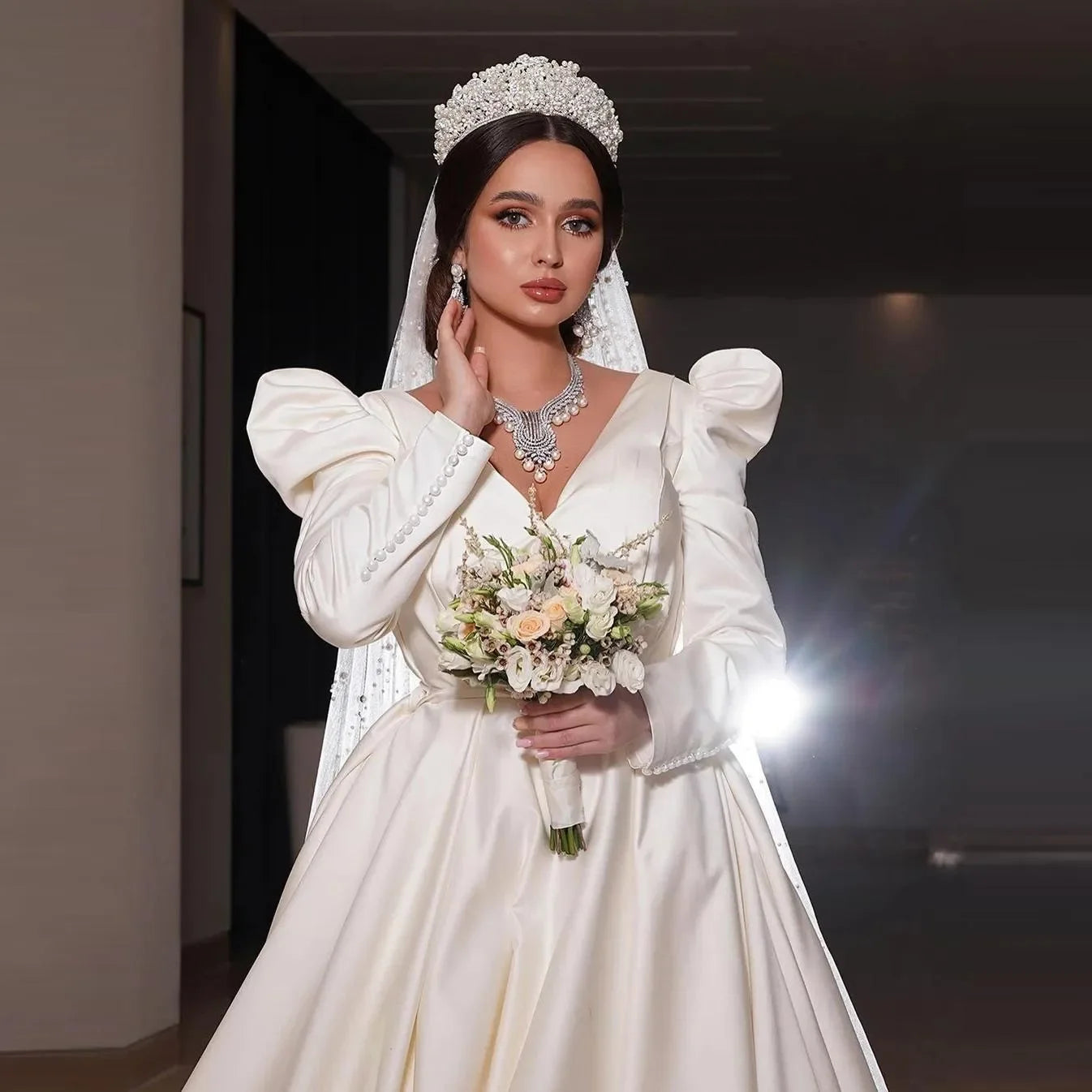 Classic vintage plus size wedding dress Long sleeve V-neck Church Wedding Train Beach Elegant Line A bridal dress custom new