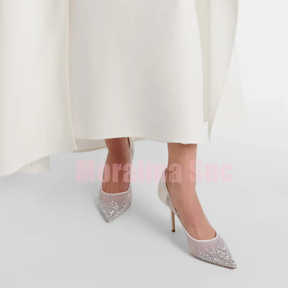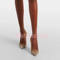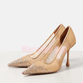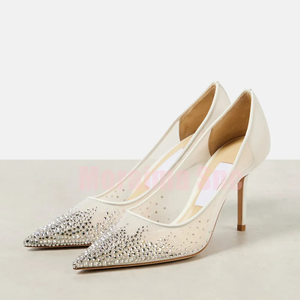 Crystal Embellished Mesh Pumps Pointed Toe Shallow Slip On Stiletto High Heels Fashion Women's Dress Wedding Shoes 2025 Newest