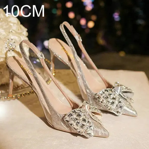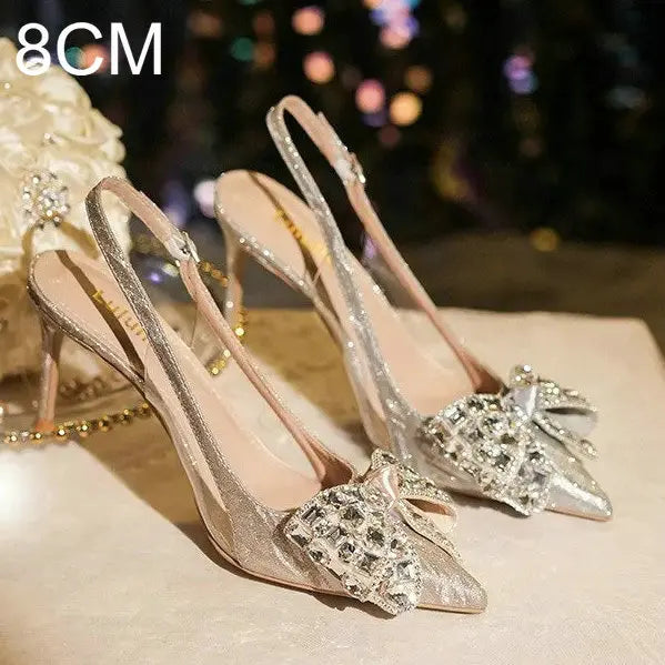 Crystal Wedding Shoes, Pointed-Toe Toe, Autumn Bridal Shoes, Fashionable Rhein Diamond Bridesmaid High Heels And Sandals