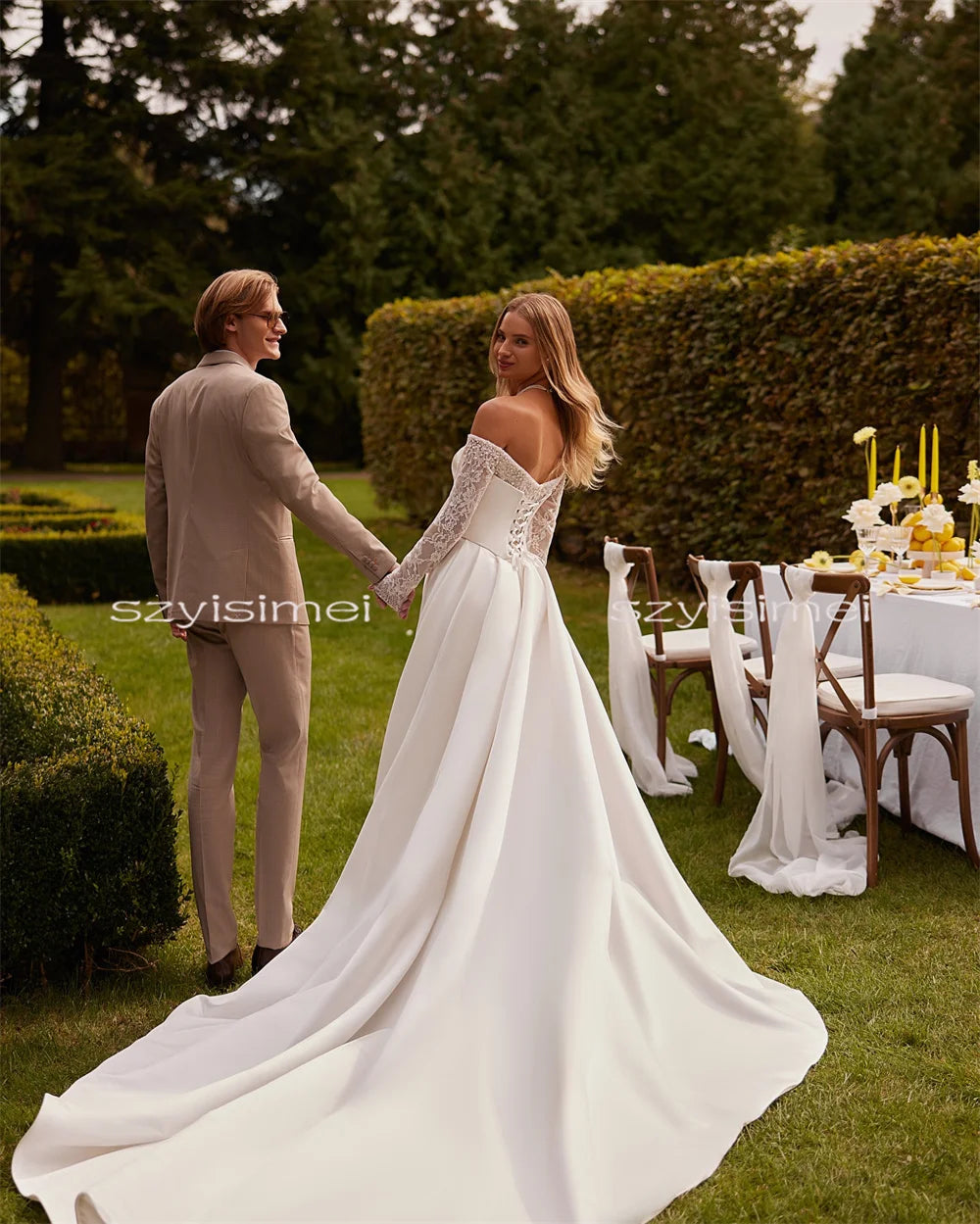 Customized A Line Princess Wedding Dresses 2026 For Bride Off Shoulder 3/4 Lace Sleeve Women Ball Bridal Gown robe de mariée
