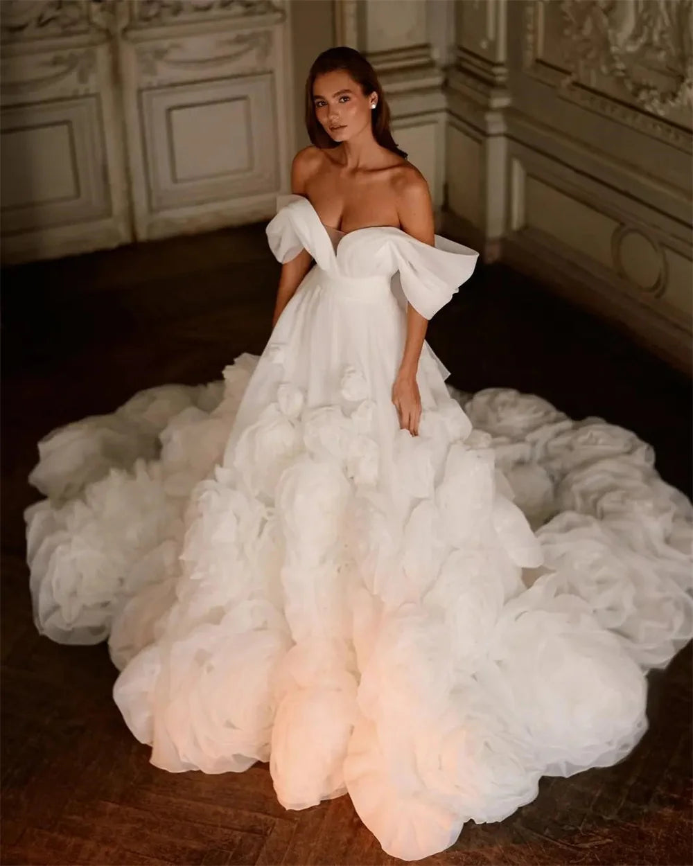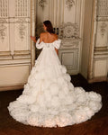 Customized Off Shoulder Wedding Gown A-Line Long Train With Flowers Evening Gowns vestidos de novia