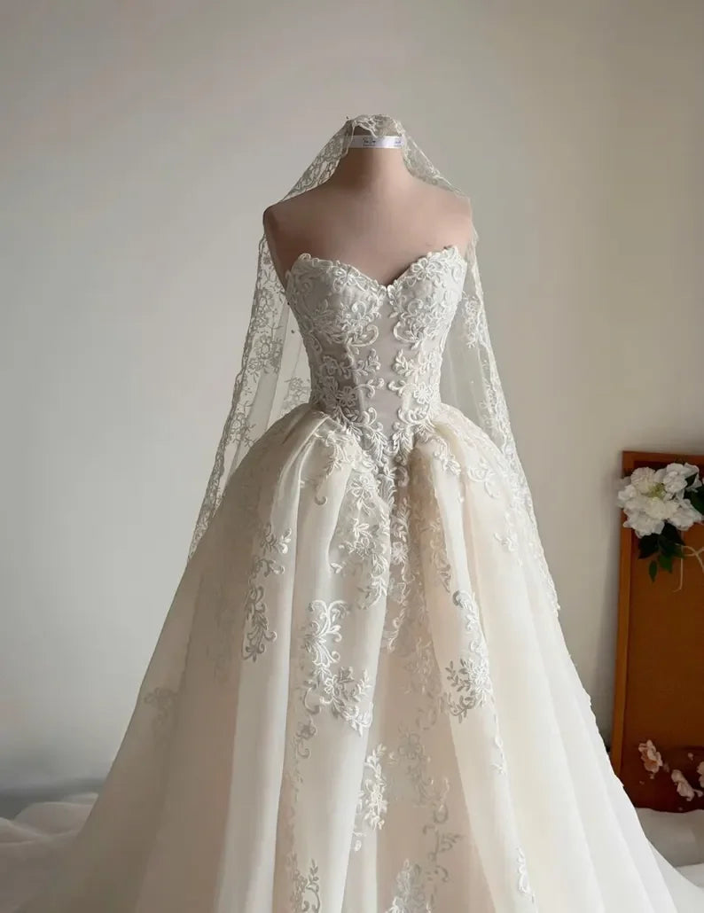 Customized02025 New Elegant A-Line Lace Applique Princess Wedding Dress Sweetheart Backless Pleated Luxury Ball Bridal Dress
