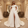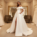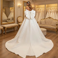Elegant Satin Off Shoulder Wedding Dress With Bow Long Slit Ball Gown For Women Backless Bridal Party Gown Vestidos Novia