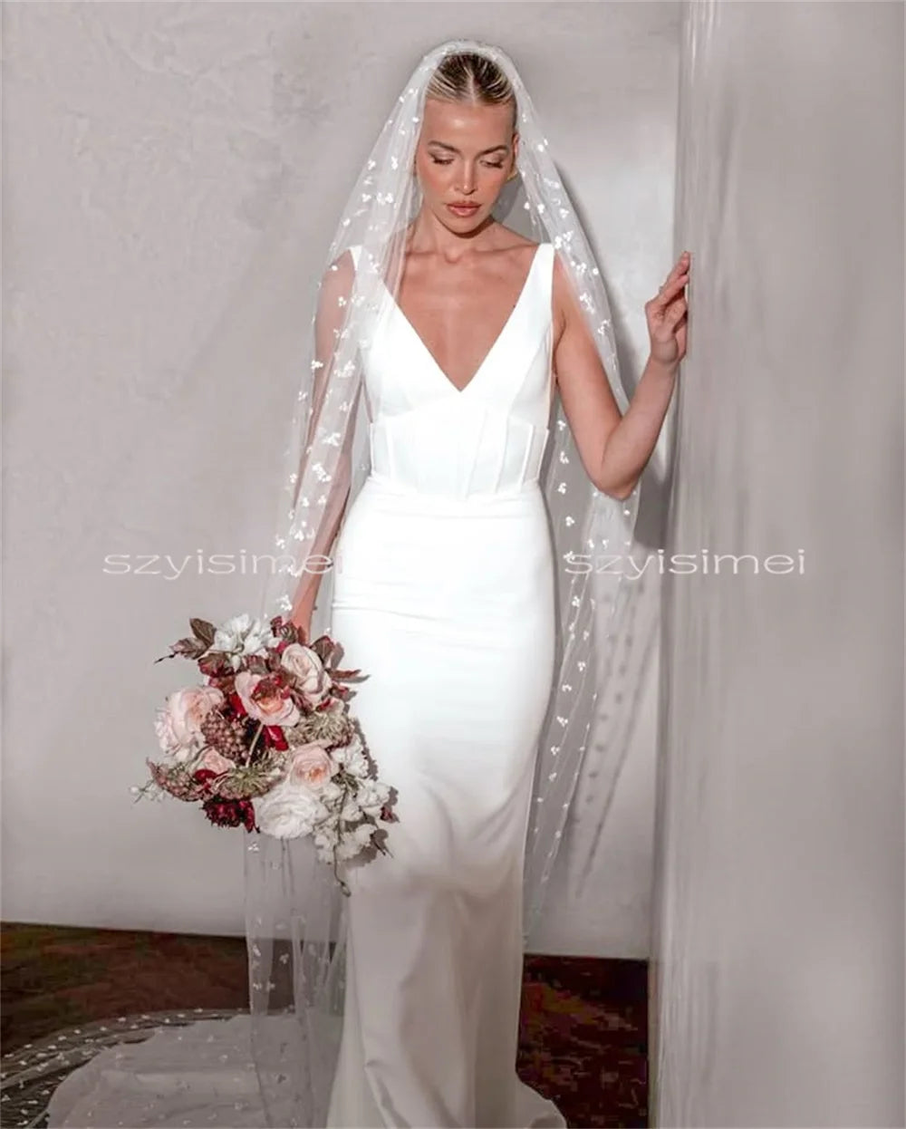 Elegant V Neck Sheath Mermaid Wedding Dresses Spaghetti Straps Sleeveless Bridal Dress For Wedding Evening Gown Vestido De Noiva
