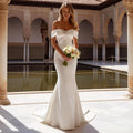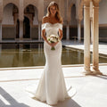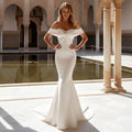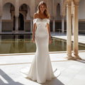 Elegant Vestidos Novia Mermaid Wedding Dress Long Satin Off Shoulder For Bride Button Hand Beading Bridal Party Gown For Women
