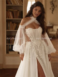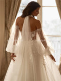 Elegant Wedding Dresses Appliques Sweetheart A-Line Long Train Bridal Gown For Wedding 3/4 Sleeve Customized Bride Dresses