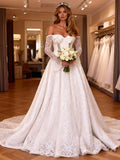 Luxury Appliques Wedding Dress With Train Long Sleeve Sweetheart Ball Gown Lace Bridal Party Gown For Bride vestido de novia