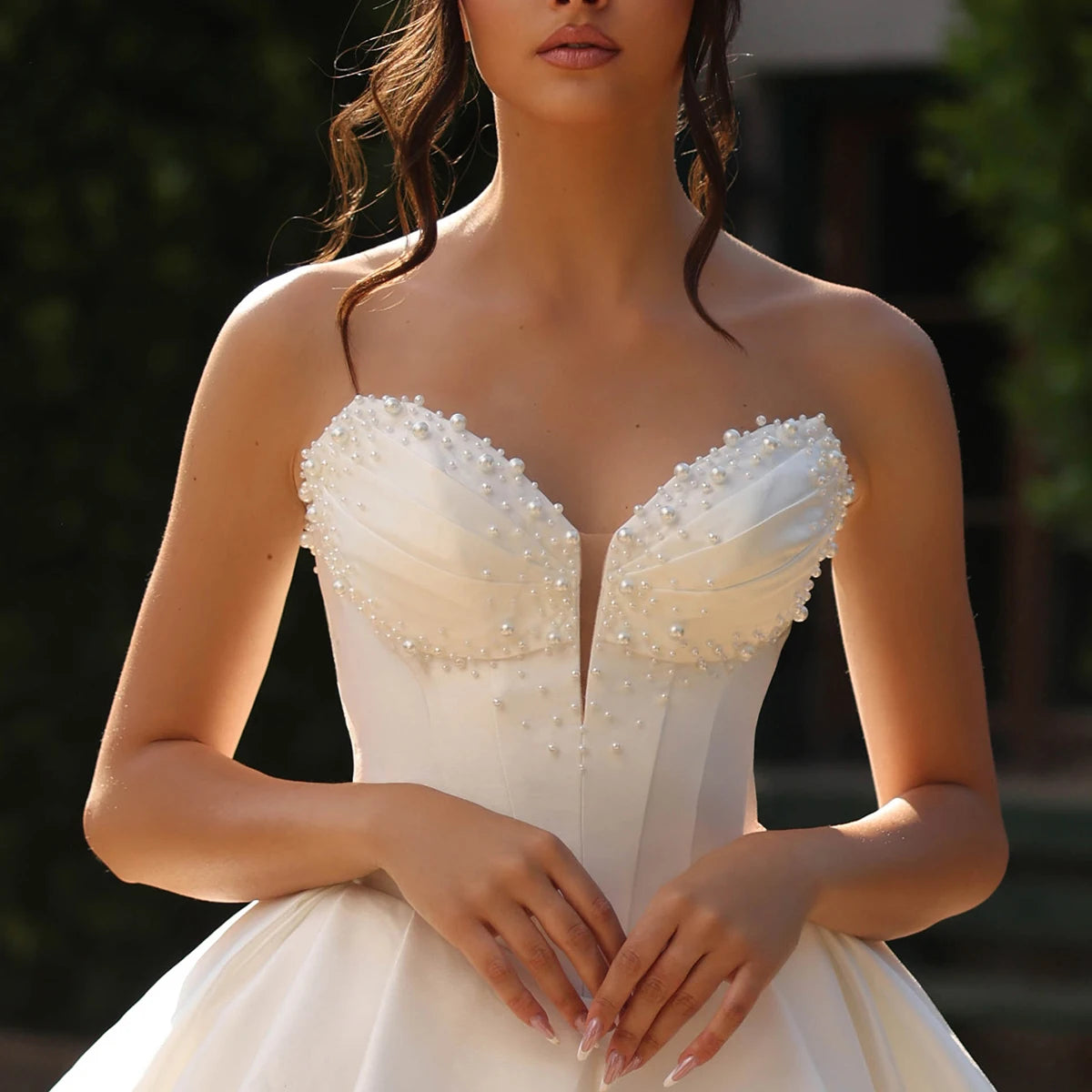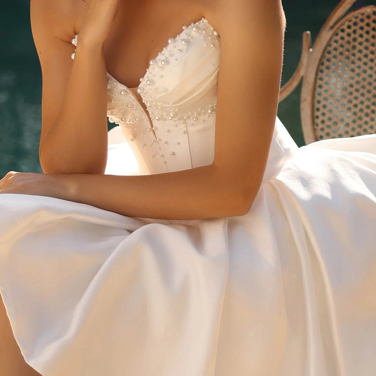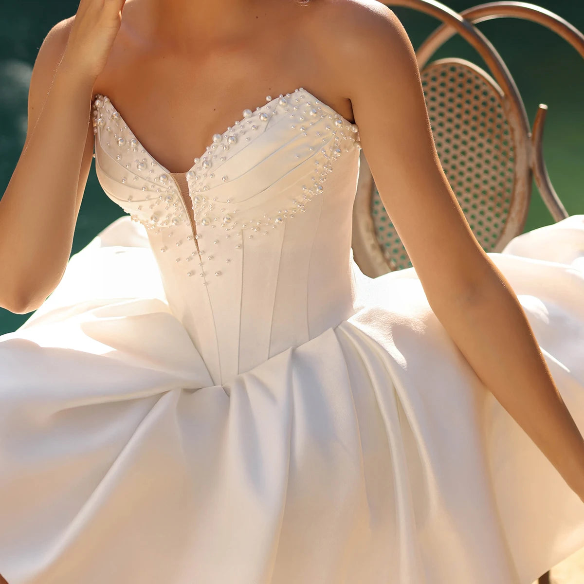 Luxury Beaded Short Wedding Dress For Bride Vestidos Novia Strapless Puffy Ball Gown For Women Mini Satin Bridal Party Gown