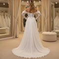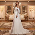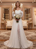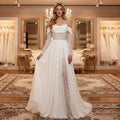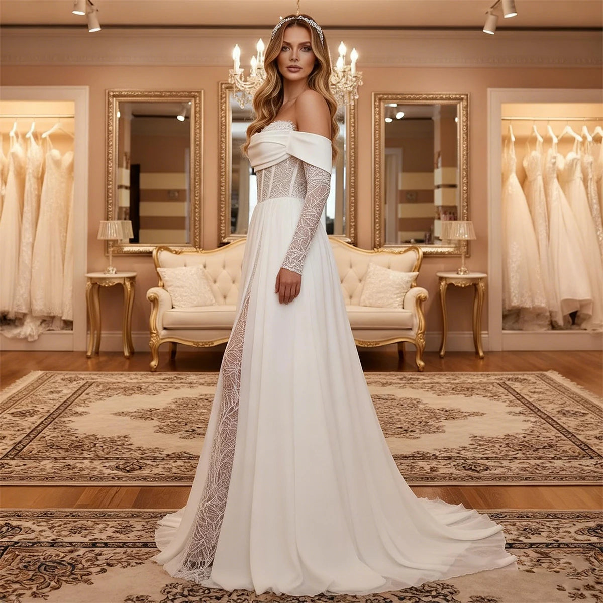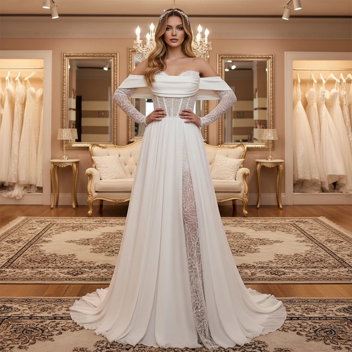 Luxury Sweetheart Lace Wedding Dress With Slit Satin Bridal Gown For Women Long Sleeve Off Shoulder Ball Gown Vestidos Novia