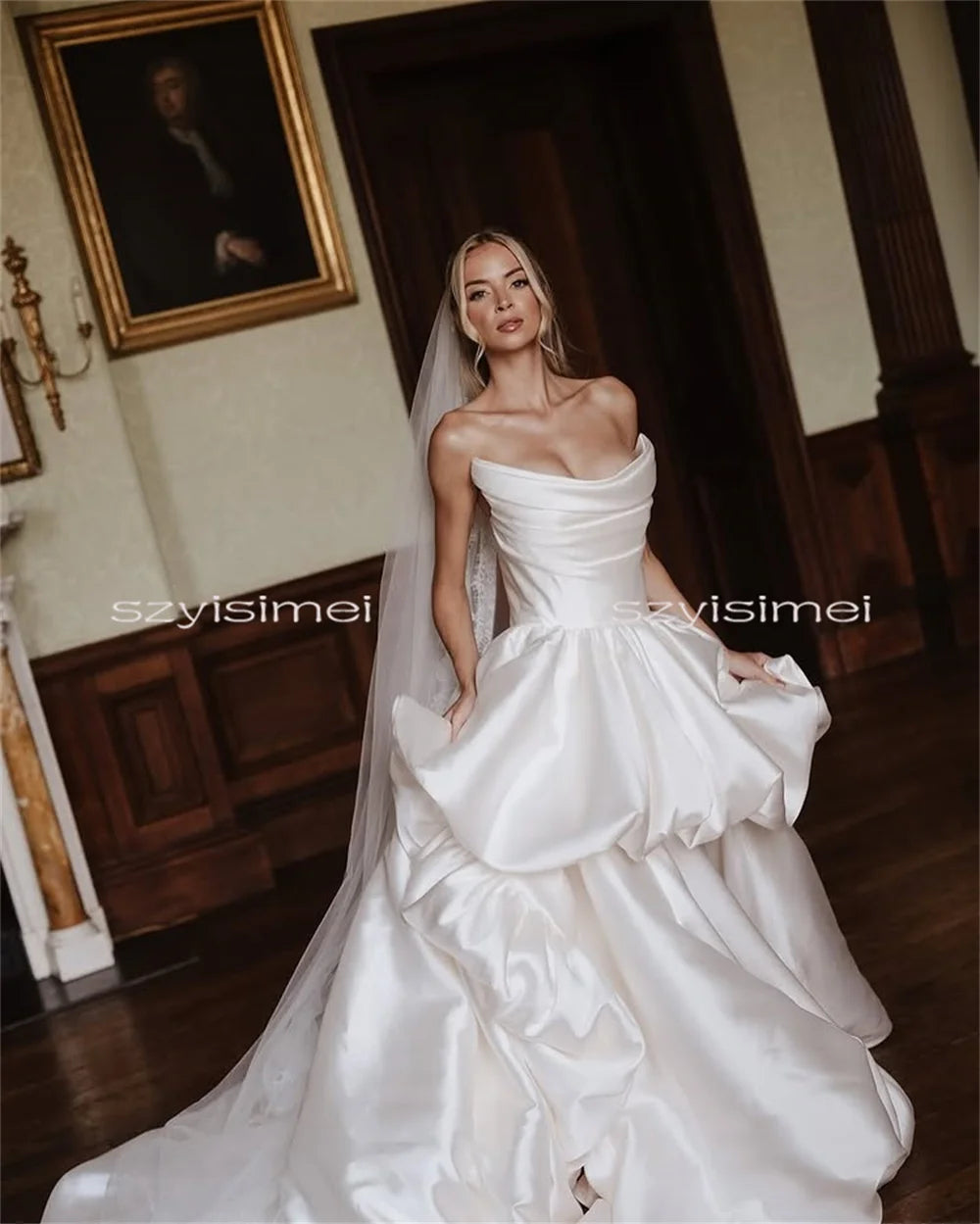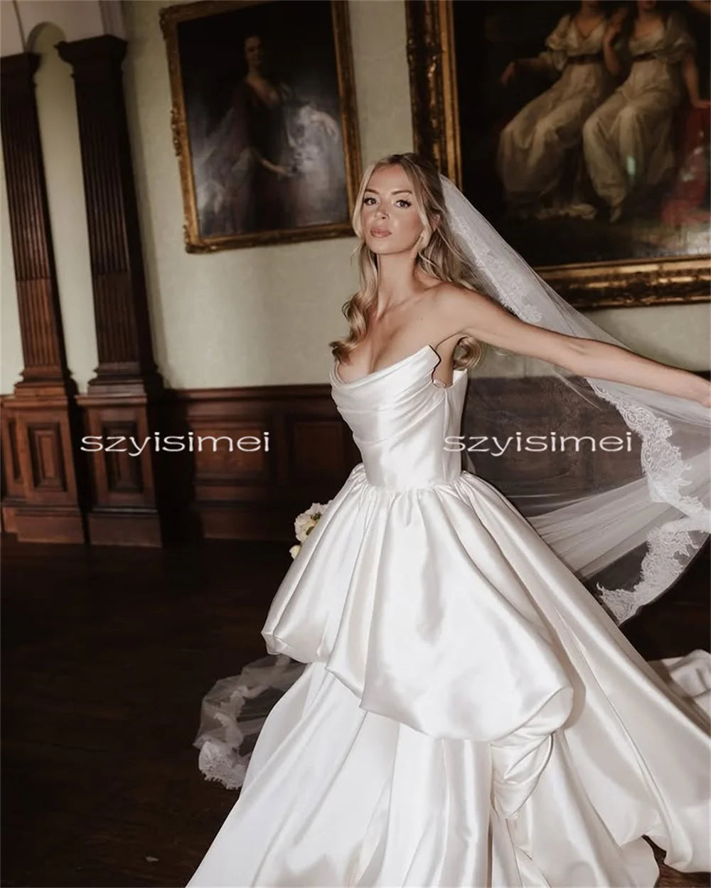 Newest Strapless Weddings Dresses A Line Layers Bridal Dress For Wedding Back Corset Princess Wedding Dress amanda novias