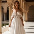 Off Shoulder Lace Wedding Dress Long Illusion Bodic Top Chiffon for Bride A Line Bridal Party Gown For Women Vestidos Novia