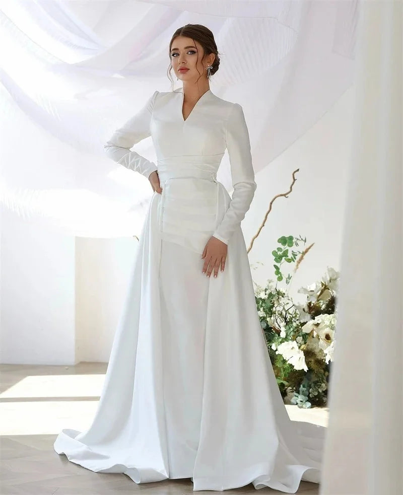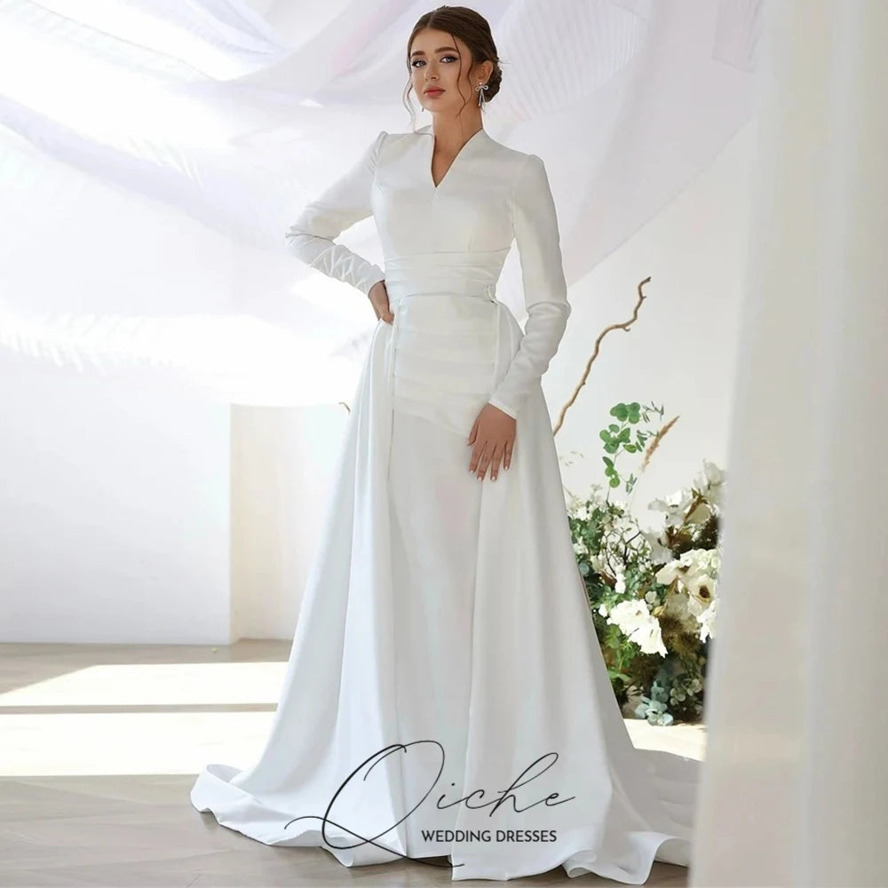 QICHE Modest Muslim Wedding Dresses Long Sleeve Luxury Floor Civil Bride Dresses Plus Customized 2026 Evening Prom Party Gowns