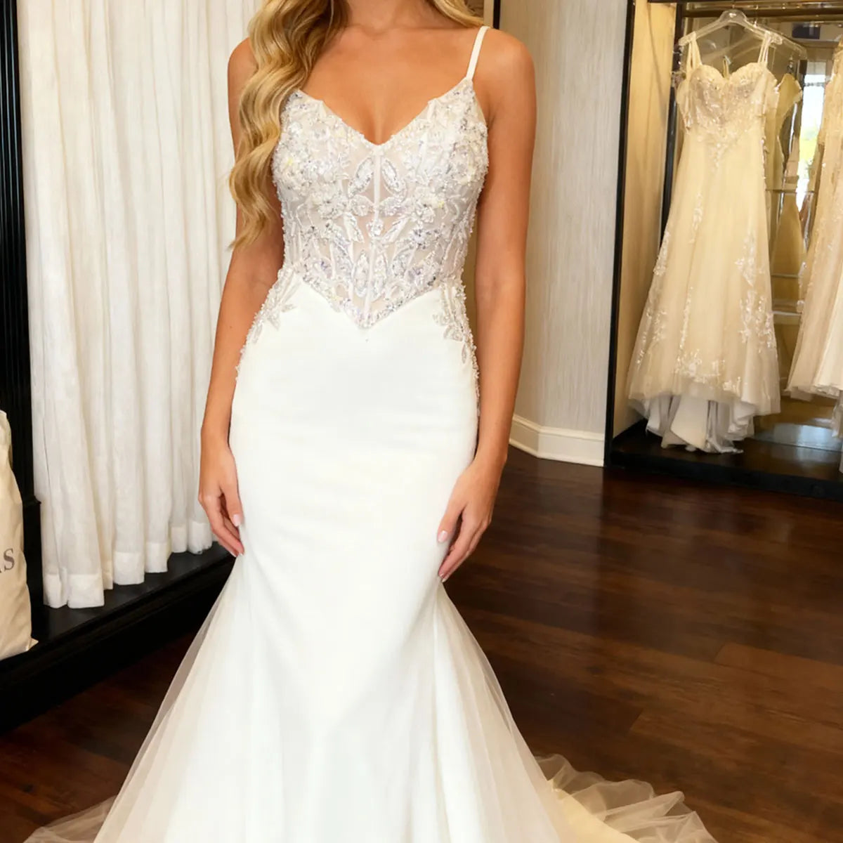 - Use the internal hanger straps, if available, to support the dress's structure and prevent stretching.