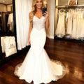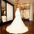 Romantic V Neck Sheath Beaded Wedding Dresses For Women Vestidos Novia Satin Mermaid Backless Bridal Party Gown For Bride
