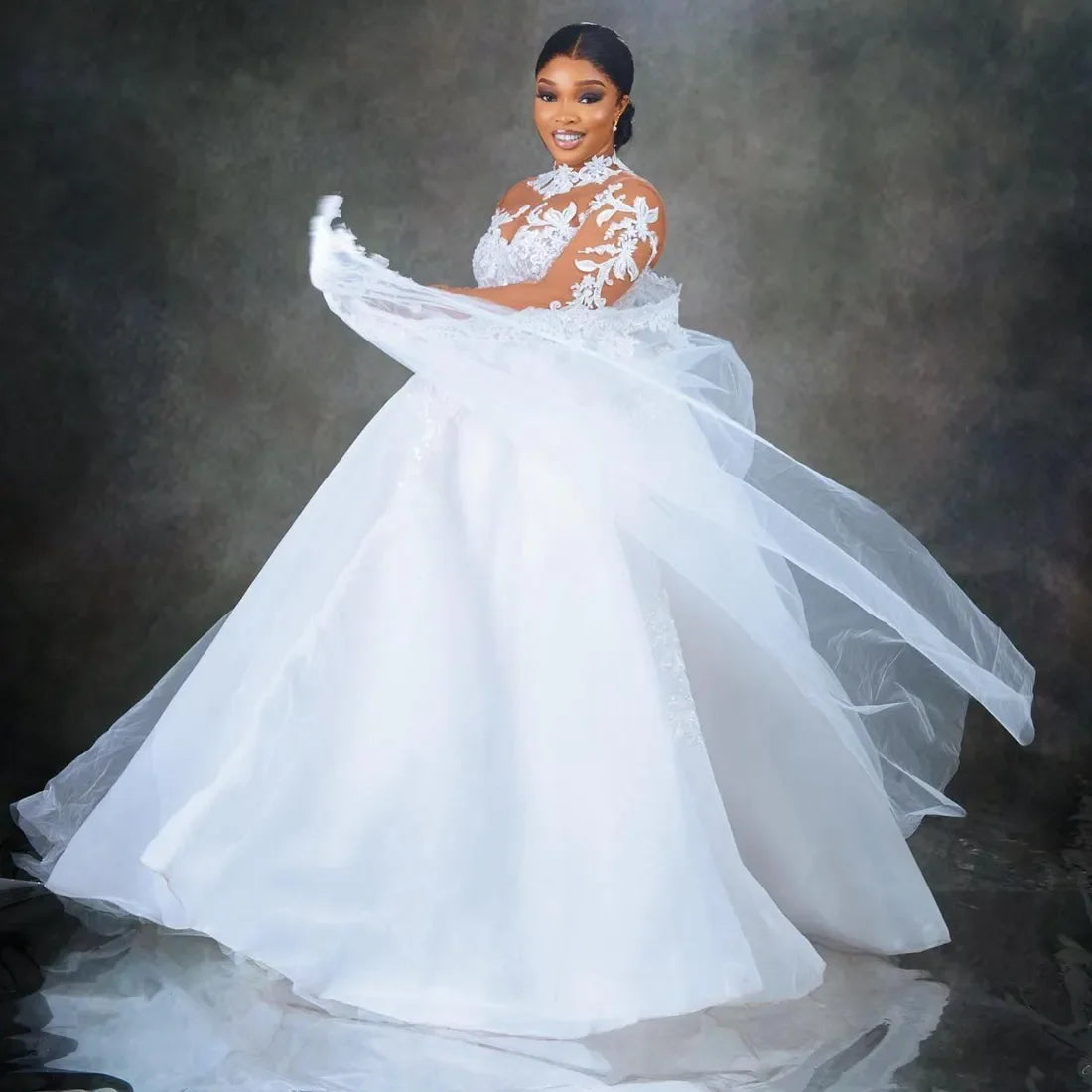 Sexy plus size Wedding Dress High neck Applique Long Sleeve Ball Gown Princess Queen Beach Outdoor Photography Bridal Dress