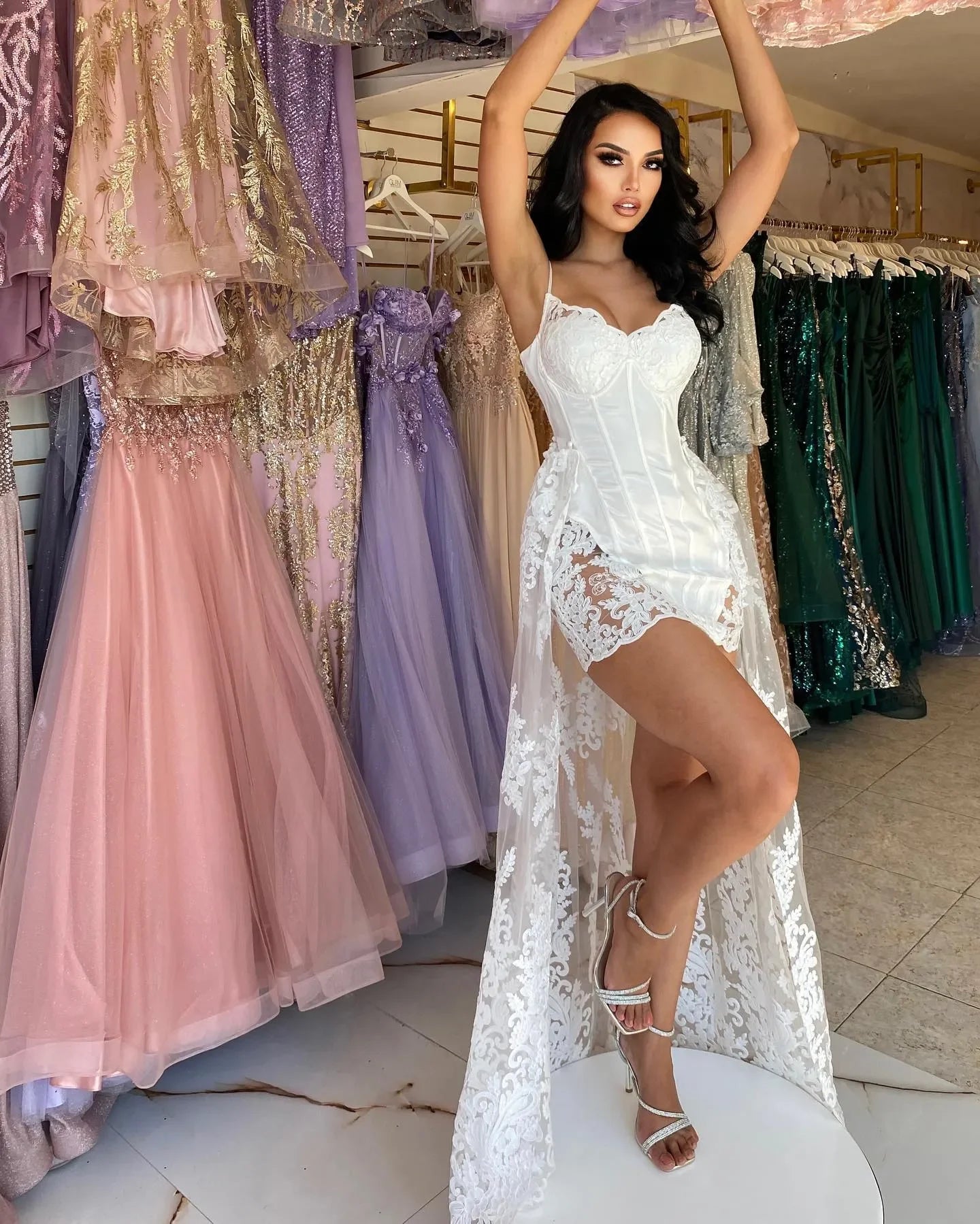 Sexy Sheath Prom Dresses Spaghetti Straps Sweetheart Applique Above Knee Length Formal Evening Pageant Dresses Customized 2025