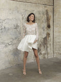 Sexy Short Beach Satin Wedding Dresses Appliqued Long Sleeve Backless Reception Bridal party With Pockets Women Formal Dress