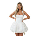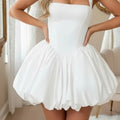 Simple Puffy Short Wedding Dresses For Bride A Line Backless Ball Gown Vestidos Novia Mini Satin Bridal Party Gown For Women