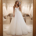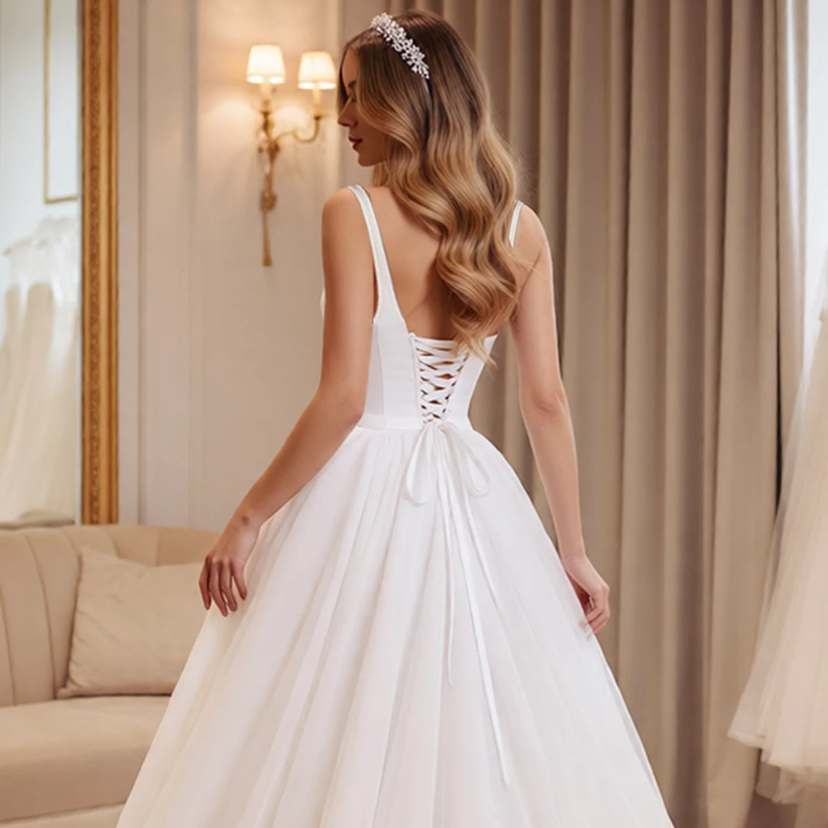 Simple V Neck Tulle Puffy Ball Gown Wedding Dresses For Women Vestidos Novia Long A Line Bridal Party Gown For Bride