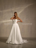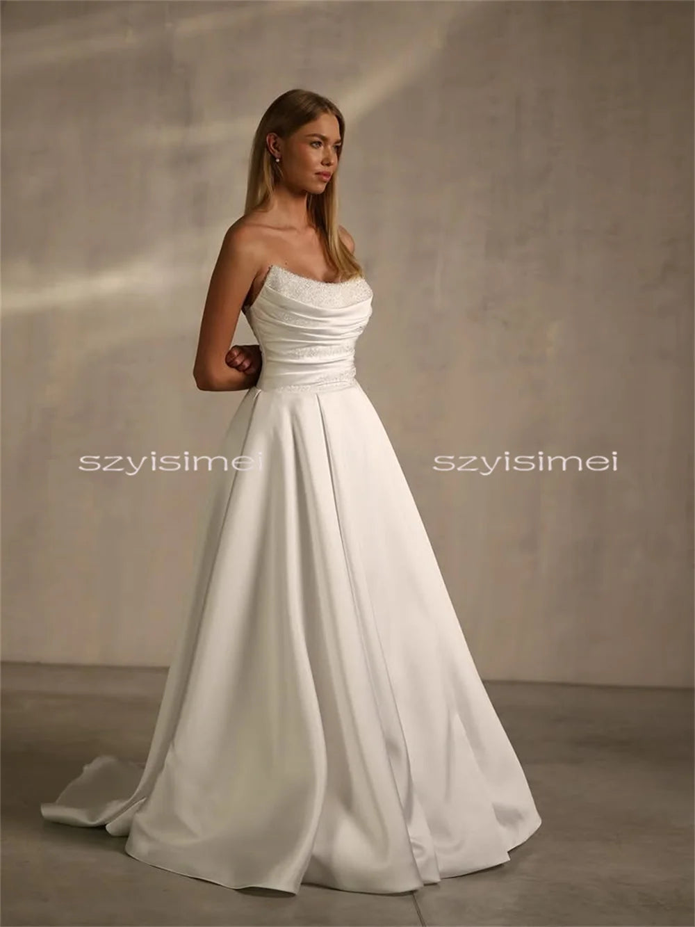 Strapless Wedding Dresses Sleeveless Bridal Dress Customized Satin A Line Boho Weddings Dress amanda novias