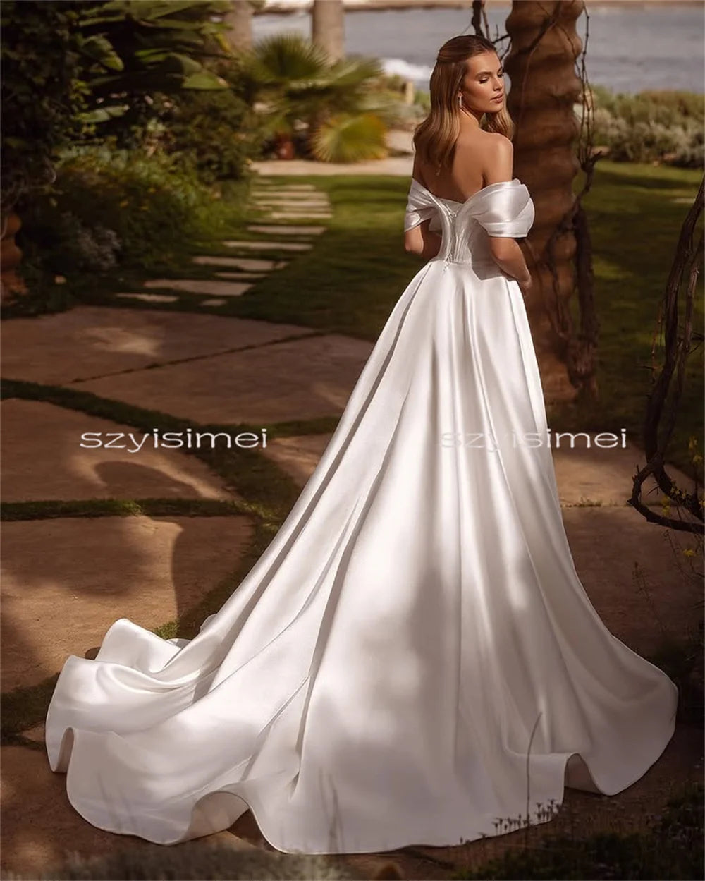 Stunning Strapless Neckline Satin Wedding Gown Modest A Line Wedding Dress For Bride Customized Sweep Train Vestido De Noival